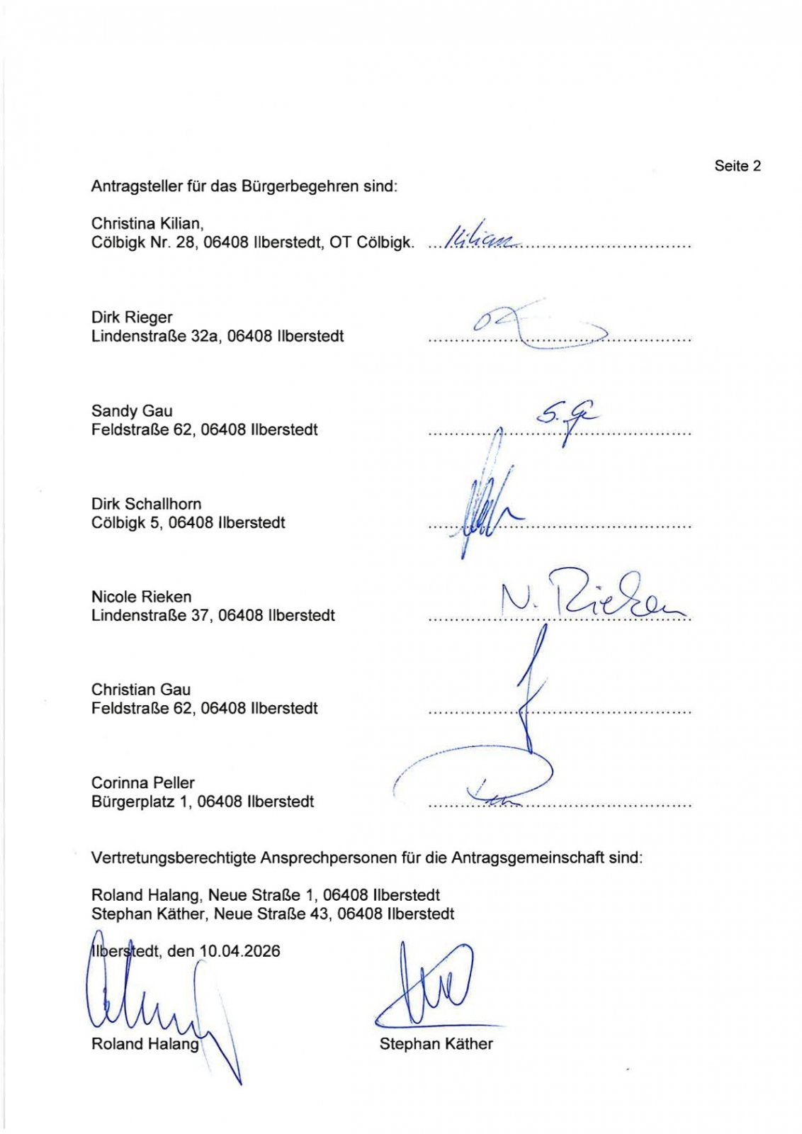 Die Antragsgemeinschaft "Dorfgemeinschaftshaus Ilberstedt" beantragt die Durchführung eines Bürgerbegehrens nach § 26 Kommunalverfassungsgesetz des Landes Sachsen-Anhalt.